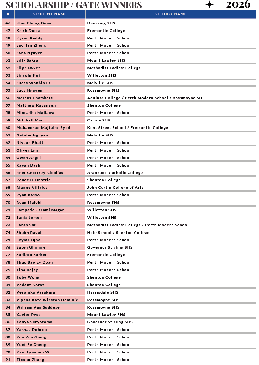 We have consistently been receiving good news of our students who were awarded places in Opportunity Classes, scholarships at private schools, Selective High Schools, IGNITE program, Gifted & Talented Placement and SEAL classes.