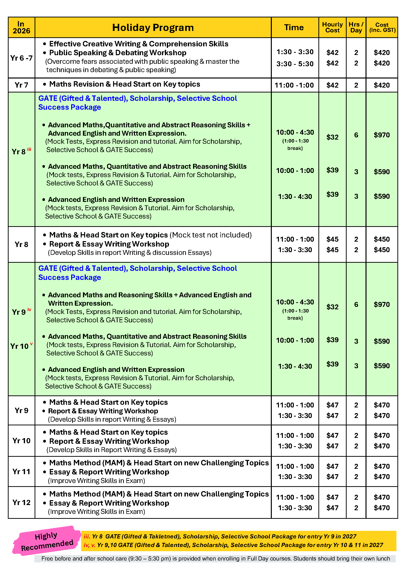WA – 2025 Y12 ATAR Accelerated Success Program